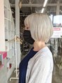 ケアブリーチでホワイトイエローまで脱色。ムラサキシャンプーとオンカラーで黄色味を飛ばしました。