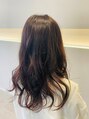 - カラーはパーソナルカラーに合わせてピンクアッシュに。毛先は緩めに巻いて柔らかさを演出