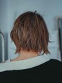 アゴ下の水平のラインでボブに切りました。ほぼワンレングスのスタイルでしっかりすくことにより、タイトでくびれや丸みを作れるのでオススメです。カラーはブリーチしてから、人気の柔らかいミルキーベージュに染めました。