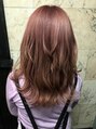 カラーはハイライトを入れながら全体ブリーチし縦のムラを作りながらベースメイクしています。このタテムラブリーチは繰り返すことでより上質なカラーに育っていきます。ベースはハイブリーチ、オンカラーは色味強めのラベンダーピンクです。