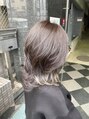 1度のカラーで、出来るだけ赤みが出ないよう配合して、アッシュブラウンに仕上げました◎ポイントデザインで、サイドの髪に1ブリーチしてから、明るめの色味でくすませてあります。派手過ぎないのに、とってもオシャレだからオススメ♪