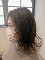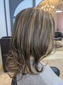 何度かハイライトを重ねて育ててきているハイライトにベースはダークブルーアッシュ立体感と、透明感が出て、自分にしかないデザインになります