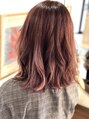 『 ピンクブラウン×ふんわりミディ 』ブリーチ無しピンク♪