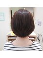ボブスタイルを軽くして、トップにボリュームが出るようにカットしました。ストレートでも、カールでも合うスタイルです。
