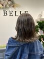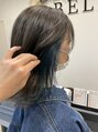 全体的に黄ばみを抑えたグレージュに仕上げました♪イヤリングカラーにターコイズブルーを入れました☆イヤリングカラーは耳周りだけブリーチを使用しているので派手すぎず好きな色をワンポイント入れる事ができます◎