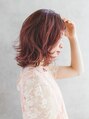 ハイトーンのピンクレッドです。顔に赤みが射すので肌がキレイに見えて色白さんに似合いやすいカラーです。個性派の髪色ヘアを人気のくびれ系に仕上げてみました。