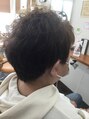 少しキツめのパーマをかけたツーブロックのアシメショートです。
