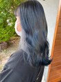 全体は1ブリーチでインナーの部分は2回ブリーチ済みのカラーです。濃くネイビーを入れる事で艶感のある仕上がりになります!
