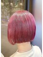 ピンクカラーハイトーンブリーチ大人可愛い切りっぱなしボブ
