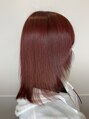 顔まわりだけレイヤーを入れて軽く見せます。カラーはブリーチなしのピンクカラー♪