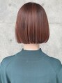 切りっぱなしボブは顔周りの少量の後れ毛のみ巻くことでこなれた印象に。アップリコットカラーでオシャレ度もUP