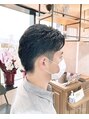 [気に入って頂いた写真はブックマークしてご提示下さい]くせ毛をいかした収まりの良い再現性スタイリングがしやすいスタイルになります♪上げ流しバング、サイドは2ブロック、襟足はグラデーション刈り上げ!ソフトジェルを揉み込むだけの楽ちんスタイリング