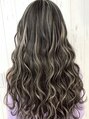 バレイヤージュを施し赤味のない外国人風に!カラーはくすみ感を強調し最新のデザインカラーを外国人風に仕上げ、当店オリジナルの人毛レミーエクステをチョイスし長さとボリューム感をだしてアレンジ多彩な万能スタイルで巻き髪スタイルを楽しめます