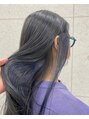 【気に入ったスタイルは、ブックマークしてカウンセリングの時にご提示ください】ハイライトたっぷりのネイビーブルーカラーです!内側にたくさんハイライトをいれているので、結んだり、耳にかけるとたくさんでてきて可愛いです◎