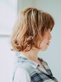 重めボブベースに表面に軽いレイヤーを入れ軽さをだしています。軽すぎないラフな動きが全体のスタイルに立体感をあたえます。カラーは赤みが出にくいアッシュベージュにすることによってスタイルに柔らかさを出してくれます。【稲毛】