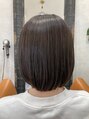 肩より少し上なので肩で跳ねない長さです。外はねも人気ですが、スッキリ感と手入れの楽さから人気です。伸びてきたら、外はねに変えていけるので長く楽しめるスタイルです。