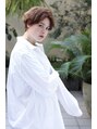 センターパートでメンズライクなショートスタイルです。カールや頭の丸みを意識したカットで、女性らしさも残しながらつくらせていただきます。