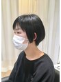 アシメボブです。モデルのお客様は、アシメの長い方をもう少し伸ばしていく予定で、かなり個性的なスタイルになります。(^^)ただ、いつも片サイドを耳にかけられる方は、このようなアシメスタイルの方がスッキリして、耳にもかけやすいのでおススメです。