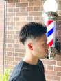 スキンフェードにトップを遊ばせたショートスタイルです!フェードの硬さ男らしさとトップの動きによるアクティブさがどの角度からもカッコいいです!