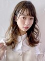 34mmコテで表面を内巻きにそれ以外を外ハネに顔周りをリバーススパイラルに【気に入ったスタイルは「ブックマークする」ボタンを押して、ご来店時ご提示ください】パープルカラー,オレンジカラー,ミルキーベージュ,3Dカラー,抜け感,艶カラー,透け感