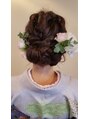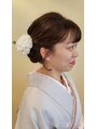 訪問着のアップスタイル 生花を髪飾り代わりにつけました