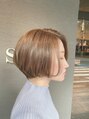 丸みのあるショートスタイルです☆上品でスタイリッシュな仕上がり。カラーはオリーブベージュです。