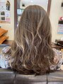 ハイライトたっぷりロングヘア!ハイライトを入れることで動きが出やすく軽いスタイルに。巻きやすいようにレイヤーを入れて躍動感UP!巻き方で見え方も変わるのでパターンが楽しめるスタイルです。