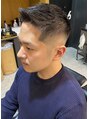 サイド0.5ミリから刈り上げたフェードスタイル。トップは前に寝かせて前髪を上げてスタイリング。