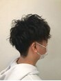 サイド、襟足は刈り上げて、柔らかい質感のスパイラルパーマで、ふんわりと仕上げたマッシュスタイルになっています!