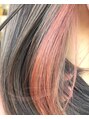 クリアベージュにサーモンピンクのインナーカラーをON。ワンレンボブとの相性抜群です!