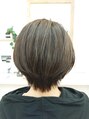 アウトラインが襟足から顎位置にかけて緩やかな前上がり、バックからフロントにかけて前下がりのラウンドグラデーション、前髪長めで、耳掛けしたりアレンジしやすい大人ショートグラデーションボブになっております☆