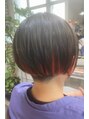 後ろとサイドはガツッと刈り上げて前下がりのショートに★インナーをランダムにブリーチしてあるのでセットの仕方で色の出方が変わります♪