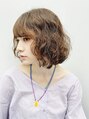 柔らかいニュアンスのボブパーマ。グレーベージュやカーキベージュ等のニュアンスカラーと組み合わせると良い感じです。フレンチカジュアルなイメージにしたい方等にもおすすめでね。斜めバングが扱いやすく簡単スタイリングでokです。