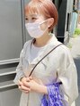 コンパクトな耳掛けショートスタイルで、ピンクベージュのカラーが映えるように。オン眉前髪で個性をプラス!