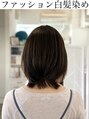 【ファッション白髪染め=白髪をデザインするテクニック】白髪をあえてしっかり染めずぼかして染める技術です。ぼかして染めることで、カラーの明度や彩度を楽しみことができます。今までになかったお洒落を楽しむことのできる白髪染めが白髪ぼかしです。