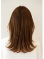 やや前下がりにカットした切りっぱなしスタイルに表面だけレイヤーをいれ、毛先をワンカール巻くだけの簡単スタイル