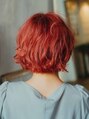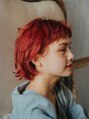 ヴィヴィットなピンクオレンジのカラーが映えるボブスタイル!バングも広めにとって個性的な髪型です!ショートからのアレンジで伸ばしかけの時期などにもおすすめ!スタイリングはランダムにはねさせたラフ感でカジュアルなときにもおすすめ!