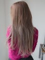 流行りのウルフレイヤーのロングスタイル。バングは狭め薄めのシースルバングで胸下のロングスタイルでも軽い印象に仕上がります!カラーリングはベージュ系で柔らかい印象になります。グラデーションにすることでよりおしゃれに![大島/大島駅]