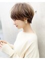 大人可愛い前髪ありのひし形耳掛けショートボブ 20代30代40代