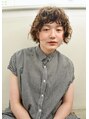 ベースは襟足ギリギリの切りっぱなし、ミニボブ♪元々のクセも活かしてくるくるパーマをかけました!!カラーは明るめのベージュで外国人風に☆ちょっと個性的なおしゃれスタイルの完成です!!