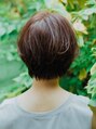 バングなしのナチュラルな大人なショートヘアです。 重くなりすぎないように顔まわりに軽さを出して柔らかい大人な印象に。 暗めのダークブラウンのカラーで地毛のような自然でかっちりとしすぎない柔らかな印象に。