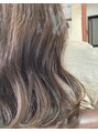 明るすぎない、透明感あるシアーベージュ◎紫外線により色が抜けやすい季節にオススメのダークすぎないカラーです◎段を入れない重ためワンレンベースですが、ゆるっと巻いて抜け感を◎