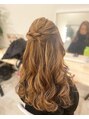 トップにボリュームつけて、顔周りは残してハーフアップ!