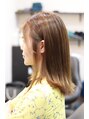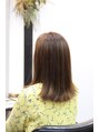 カットは毛先を整えて、バックのアンダーの髪の毛が多いので重点的におとしています。カラーはイルミナカラーのオーシャン(アッシュ系)です。明るめに設定してます。色の透明感で髪質が軽やかに見えています。髪質改善でツヤ感も良い感じです。
