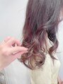 ほんのりグラデーションのピンクブラウン♪毛先に向かって、よりピンク感が増すように染めています。ピンク系は可愛らしい雰囲気にも、女性らしい雰囲気にも♪イルミナカラーでダメージレスにお染めします!!