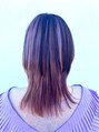 透明感のあるヌーディーなピンク、表面は濃いめのブラウンでコントラストを効かせたカラーにしました!お顔まわりのカットにデザインをいれました☆