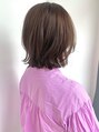 ぷつっとしたラインの切りっぱなしが大人かわいい、ギリギリ肩上のボブスタイル。細めのコテで軽く外ハネにしたり、ドライヤーでカンタンに内巻きにもなる、スタイリングがとてもラクなヘアスタイルです。