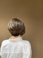 えりあし短めの前下がりボブカラーハイライトをいれ、アッシュグレーでそめました。