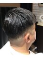 サイド&バックは2mmで刈り上げに。トップは分け目を付けずに自然に流して落ち着いたノーパートスタイル。ハチ周りにが膨らまに様に自然に2ブロックにしてまとめやすい様にしています。自然にしつつギリギリまで短くしたい方におすすめ!!