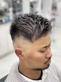 四角いシルエットで男気らしさを出したフェードカットにシルバーグレージュカラーで、ワイルドな印象に